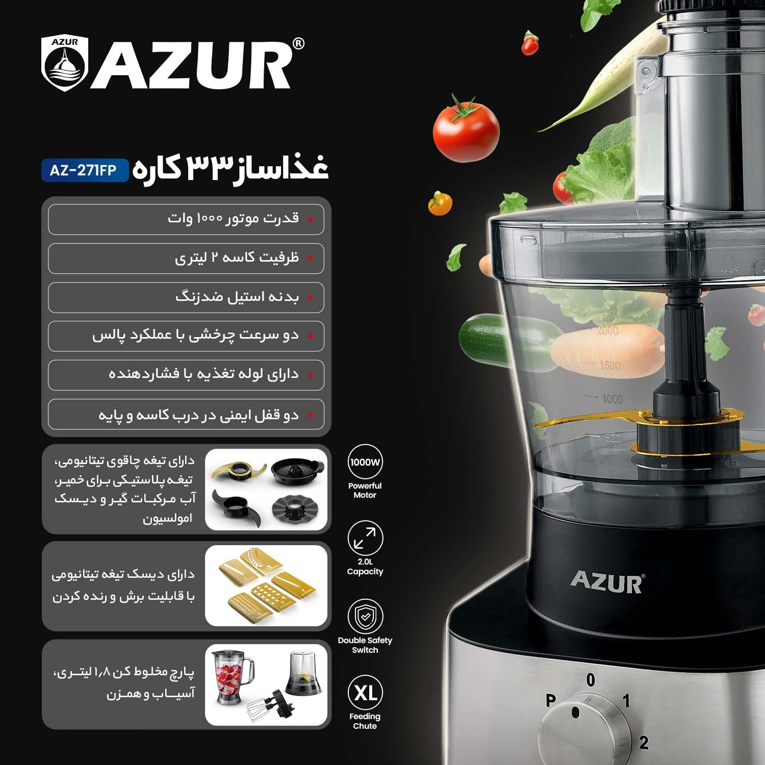 خرید غذاساز چند کاره آزور مدل AZ-271FP | موتور قدرتمند + تنوع عملکرد