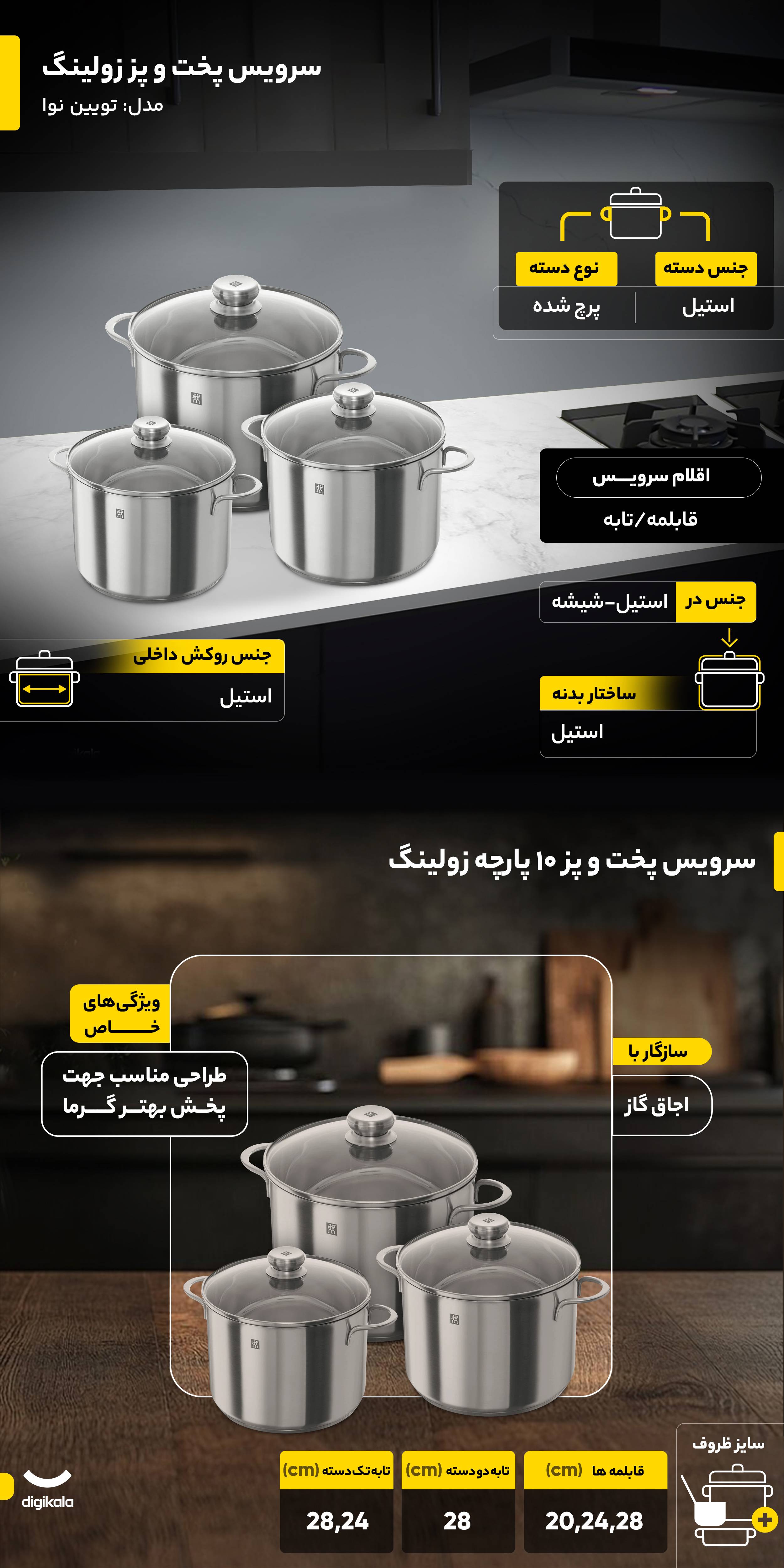 سرویس قابلمه 10 پارچه زولینگ مدل تویین نوا (ZWILLING Twin Nova)